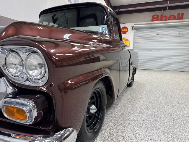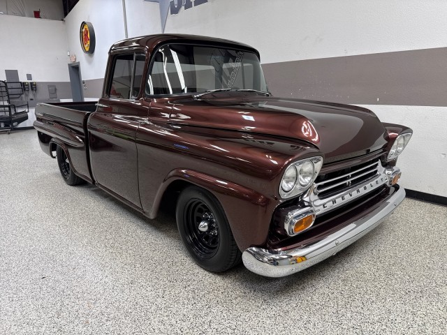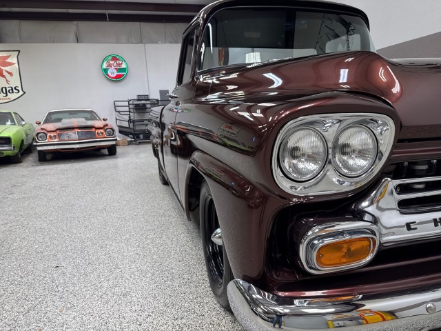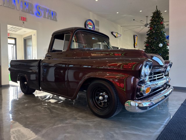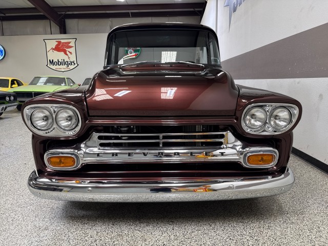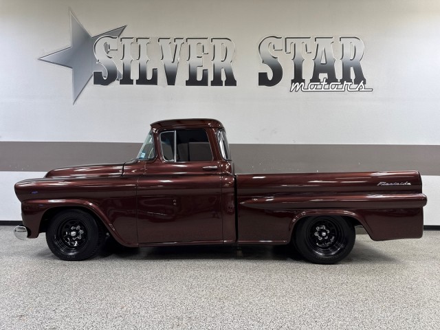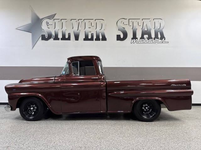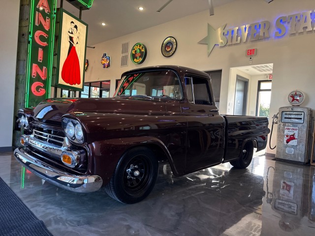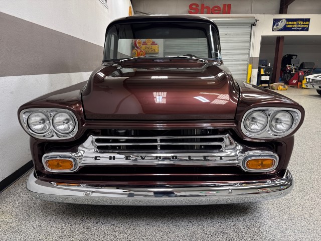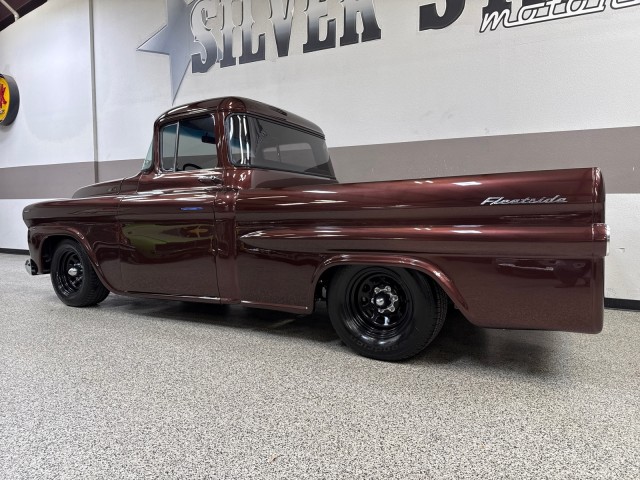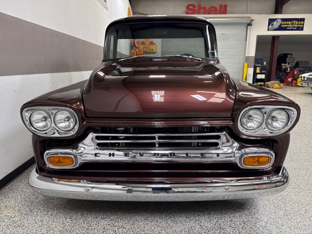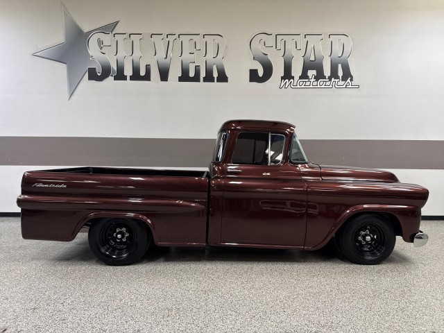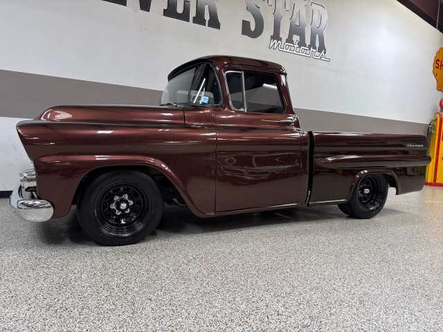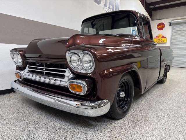 1958 Chevrolet Apache 3100 Fleetside pickup. Powered by crate 6.2L V8 LS engine with Lokar LS Classic Series Fuel style intake system with fuel injection and Holley Terminator X drive-by wire throttle body control, CVF front-runner accessory drive kit coupled with a 4L80E four-speed over drive automatic transmission! This truck has only the best. Aluminum radiator and Holley headers. A Holley fuel pump is fitted in a custom aluminum tank mounted under the bed, dual exhaust system with Magnaflow mufflers . Mustang II style independent front suspension power steering rack and pinion, parallel four-link rear setup with coil-overs all around, 9 rear end, power-assisted steering and disc brakes, an electric emergency brake, 15 American Racing steel wheels wrapped in 235/60 front and 275/60 rear BFGoodrich Radial T/A tires. The truck has new root beer brown exterior, custom leather wrapped interior. Vintage Air air conditioning, Lokar shifter with an 8-ball knob, and an electric emergency brake. The Billet Specialties three-spoke steering wheel fronts AutoMeter instrumentation, including a 120-mph GPS speedometer and gauges for fuel level, oil pressure, water temperature, and voltage. Power-assisted disc brakes at each corner. The cab houses a bench seat that has been re-trimmed in black leather with diamond-pattern red stitching. There is just too much to list. This is a nice custom Apache and is definitely priced right! you will not find one like this. Please Call us with any questions. We have financing available, please go to www.txssmotors.com and click on the financing link, not all vehicles will qualify, depending on year and miles. We can assist you with reliable shipping to your home or complementary Airport Pick Up at DFW International Airport or Dallas Love Field! Please call us @ 972-637-4234 with any questions.