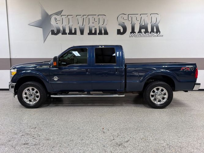 2014 Ford F-250 SRW Lariat Ultimate 3/4 Ton Super Crew 4 wheel Drive Texas Owner! This F250 is powered by a 6.7 liter V8 Power Stroke turbo diesel engine, accompanied by an automatic transmission and patented Ford four wheel drive system. This is a super nice Texas owner local F250! This truck is nice and always serviced on time. This truck rides and drives fantastic and it's loaded. This powerful diesel runs strong, the transmission is solid. Besides running fantastic it's good looking too. Lariat package, Ultimate Package, Power sliding sunroof, powered Leather seats, heated and cooled seats, power windows, power locks, power tow mirrors, power sliding rear glass, and power sliding pedals, premium sound system with GPS navigation, reverse camera, blue tooth wireless and Sync, tow package, ice cold AC, cruise control, tilt wheel, premium alloy 20" wheels with brand new 35" A/T tires, keyless entry with remote start, spray in bed liner, gooseneck hitch, chrome front and rear bumpers and much more. Buy this truck with confidence! It's as good as it looks, and it drives super nice. Plus this truck is Carfax certified, and qualifies for the Carfax buy back guarantee. This is an outstanding vehicle! Buy with confidence and save thousands! As every one of our trucks this one went through our service department and completed our full inspection and service. All the fluids and filters are new and truck is ready to go! Please Call us with any questions. We have financing available, please go to www.silverstarmotors.com and click on the financing link, not all vehicles will qualify, depending on year and miles. Ask us about extended warranties, we have very competitive pricing and great coverage options. We can assist you with reliable shipping to your home or complementary Airport Pick Up at DFW International Airport or Dallas Love Field! Please contact us @ 972-637-4234 with any questions.