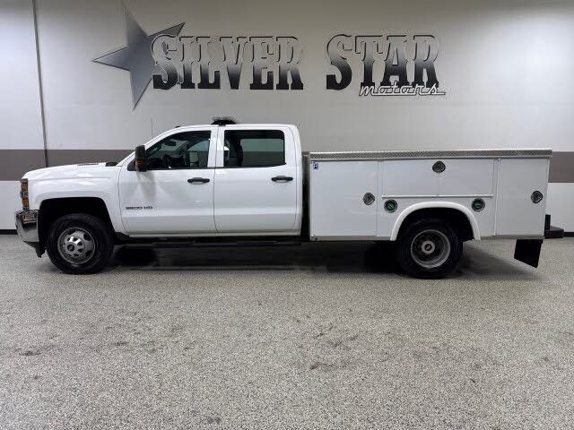 2016 Chevrolet Silverado 3500 DRW Crew Cab 4 wheel drive Service bed 1 Texas owner. This beast is powered by a 6.6 liter V8 Duramax turbo diesel engine, accompanied by an Allison 6 speed automatic transmission and patented four wheel drive system. This is a nice 1 Texas owner trade in. This is a clean truck! This truck rides and drives great. This powerful diesel runs strong, the Allison transmission is solid. Besides running fantastic its good looking too. Premium cloth seats, power windows, power locks, power tow mirrors, tow package, ice cold AC, cruise control, tilt wheel. Buy this truck with confidence! Its as good as it looks, and it is very nice! Plus this truck is Carfax certified, and qualifies for the Carfax buy back guarantee. This is an outstanding vehicle! Buy with confidence and save thousands!!! Please Call us @ 972-637-4234 with any questions. We have financing available, please go to www.texassilverstarmotors.com and click on the financing link, not all vehicles will qualify, depending on year and miles. Ask us about extended warranties, we have very competitive pricing and great coverage options. We can assist you with reliable shipping to your home or complementary Airport Pick Up at DFW International Airport or Dallas Love Field![!@@Additional Info@@!]Audio system, 4.2 Diagonal Color Display, AM/FM stereo with USB port and auxiliary jack (Not available with (AZ3) 40/20/40 split-bench seat. Upgradeable to (IOB) 7 diagonal color display radio with Chevrolet MyLink. Dynamic guidelines not available on IO3.) (Upgradeable to (IOB) 7 diagonal color display radio with Chevrolet MyLink. Dynamic guidelines not available on IO3.)|6-speaker audio system (Standard on Crew Cab and Double Cab models and Included and only available on Regular Cab models with (IOB) 7 diagonal color touch screen display radio with Chevrolet MyLink.)|Wheel, 18 x 8 (45.7 cm x 20.3 cm) full-size, steel spare Spare not included with (ZW9) pickup box delete unless a spare tire is ordered. (Requires single rear wheels. Included with (E63) pickup box. Available to order when (ZW9) pick-up box delete is ordered.)|CornerStep, rear bumper|Tires, LT265/70R18E all-season, blackwall (Requires single rear wheels.)|Bumper, front chrome|Wheels, 18 (45.7 cm) painted steel includes 18 x 8 (45.7 cm x 20.3 cm) steel spare wheel. Spare not included with (ZW9) pickup box delete unless a spare tire is ordered. (Requires single rear wheels, (QGM) LT265/70R18E all-terrain, blackwall tires or (QWF) LT265/70R18E all-season, blackwall tires.)|Tire carrier lock keyed cylinder lock that utilizes same key as ignition and door (Not included when (ZW9) pickup box delete or (9J4) rear bumper delete is ordered.)|Bumper, rear chrome with bumper CornerSteps|Grille surround, chrome|Lamps, cargo area, cab mounted with switch on center switch bank|Headlamps, halogen projector-beam|Door handles, Black|Mirrors, outside high-visibility vertical trailering, Black with manual folding and extension and lower convex spotter glass|Glass, solar absorbing, tinted|Tailgate and bed rail protection caps, top|Tailgate, locking, utilizes same key as ignition and door (Not available with (AQQ) Remote Keyless Entry.)|Steering wheel|Air conditioning, single-zone|Cruise control, steering wheel-mounted|Instrumentation, 6-gauge cluster featuring speedometer, fuel level, engine temperature, tachometer, voltage and oil pressure|Steering column, manual Tilt-Wheel|Door locks, power|Assist handle, front passenger and driver on A-pillars|Floor covering, Graphite-colored rubberized-vinyl|Windows, power with driver express up and down and express down on all other windows|Seat, rear 60/40 folding bench (folds up), 3-passenger (includes child seat top tether anchor) (Requires Crew Cab models.)|Seat trim, Vinyl|Driver Information Center 3.5-inch diagonal monochromatic display, provides warning messages and basic vehicle information|Seats, front 40/20/40 split-bench, 3-passenger, driver and front passenger recline with outboard head restraints and center fold-down armrest with storage. Vinyl has fixed lumbar and cloth has manually adjustable driver lumbar. (Upgradeable to (AZ3) front 40/20/40 split-bench seat.)|Trailering equipment Trailering hitch platform 2.5 with a 2.0 insert for HD, 7-wire harness with independent fused trailering circuits mated to a 7-way sealed connector to hook up parking lamps, backup lamps, right and left turn signals, an electric brake lead, battery and a ground, The trailer connector also includes the 4-way for use on trailers without brakes - park, brake/turn lamps (Will be deleted if (ZW9) pickup box delete or (9J4) rear bumper delete is ordered.)|Cooling, auxiliary external transmission oil cooler|Transfer case, with floor-mounted shifter (Included with 4WD models only.)|Engine, Vortec 6.0L Variable Valve Timing V8 SFI E85-compatible, FlexFuel capable of running on unleaded or up to 85% ethanol (360 hp [268.4 kW] @ 5400 rpm, 380 lb-ft of torque [515.0 N-m] @ 4200 rpm) (Does not include E85 capability with (ZW9) pickup box delete.)|Chassis, single rear wheel|Recovery hooks, front, frame-mounted, black|Battery, heavy-duty 720 cold-cranking amps/80 Amp-hr maintenance-free with rundown protection and retained accessory power|Cooling, external engine oil cooler|GVWR, 11,000 lbs. (4990 kg) with single rear wheels (Requires K35943 or C35953. Not available with (LML) Duramax 6.6L Turbo Diesel V8 engine.)|Air cleaner, high-capacity|Alternator, 150 amps|Transmission, 6-speed automatic, heavy-duty, electronically controlled with overdrive and tow/haul mode. Includes Cruise Grade Braking and Powertrain Grade Braking (Requires (L96) Vortec 6.0L V8 SFI engine or (LC8) 6.0L V8 SFI Gaseous CNG (Compressed Natural Gas) engine.)|Suspension Package, Standard includes 51mm twin tube shock absorbers and 33mm front stabilizer bar|Trailer brake controller, integrated (If (ZW9) pickup box delete or (9J4) rear bumper delete is ordered (JL1) trailer brake controller 