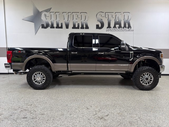 2021 Ford F-250 SRW King Ranch Ultimate BDS Pro Lift 3/4 Ton Super Crew 4 wheel Drive 1 Texas Owner! This F250 is powered by a 6.7 liter V8 Power Stroke turbo diesel engine, accompanied by an automatic transmission and patented Ford four wheel drive system with BDS Offroad package. This is a super nice 1 Texas owner local F250! This truck is nice and always serviced on time. This truck rides and drives fantastic and it’s loaded. This powerful diesel runs strong, the transmission is solid. Besides running fantastic it’s good looking too. King Ranch package, Ultimate Package, Custom BDS suspension lift with Fox coil overs, dual panel sunroof, Power running boards, powered Leather seats, heated and cooled seats, massage seats, power windows, power locks, power tow mirrors, power sliding rear glass, and power sliding pedals, premium sound system with GPS navigation, reverse camera, 360 cameras, blue tooth wireless and Sync, tow package, ice cold AC, cruise control, tilt wheel, chrome 18 wheels with Nice 37 Nitto tires, keyless entry with remote start, keyless Go, spray in bed liner, factory gooseneck, chrome front bumper and much more. Buy this truck with confidence! It’s as good as it looks, and it drives super nice. Plus this truck is Carfax certified, and qualifies for the Carfax buy back guarantee. This is an outstanding vehicle! Buy with confidence and save thousands! As every one of our trucks this one went through our service department and completed our full inspection and service. All the fluids and filters are new and truck is ready to go! Please Call us with any questions. We have financing available, please go to www.texassilverstarmotors.com and click on the financing link, not all vehicles will qualify, depending on year and miles. Ask us about extended warranties, we have very competitive pricing and great coverage options. We can assist you with reliable shipping to your home or complementary Airport Pick Up at DFW International Airport or Dallas Love Field! Please contact us @ 972-637-4234 with any questions.